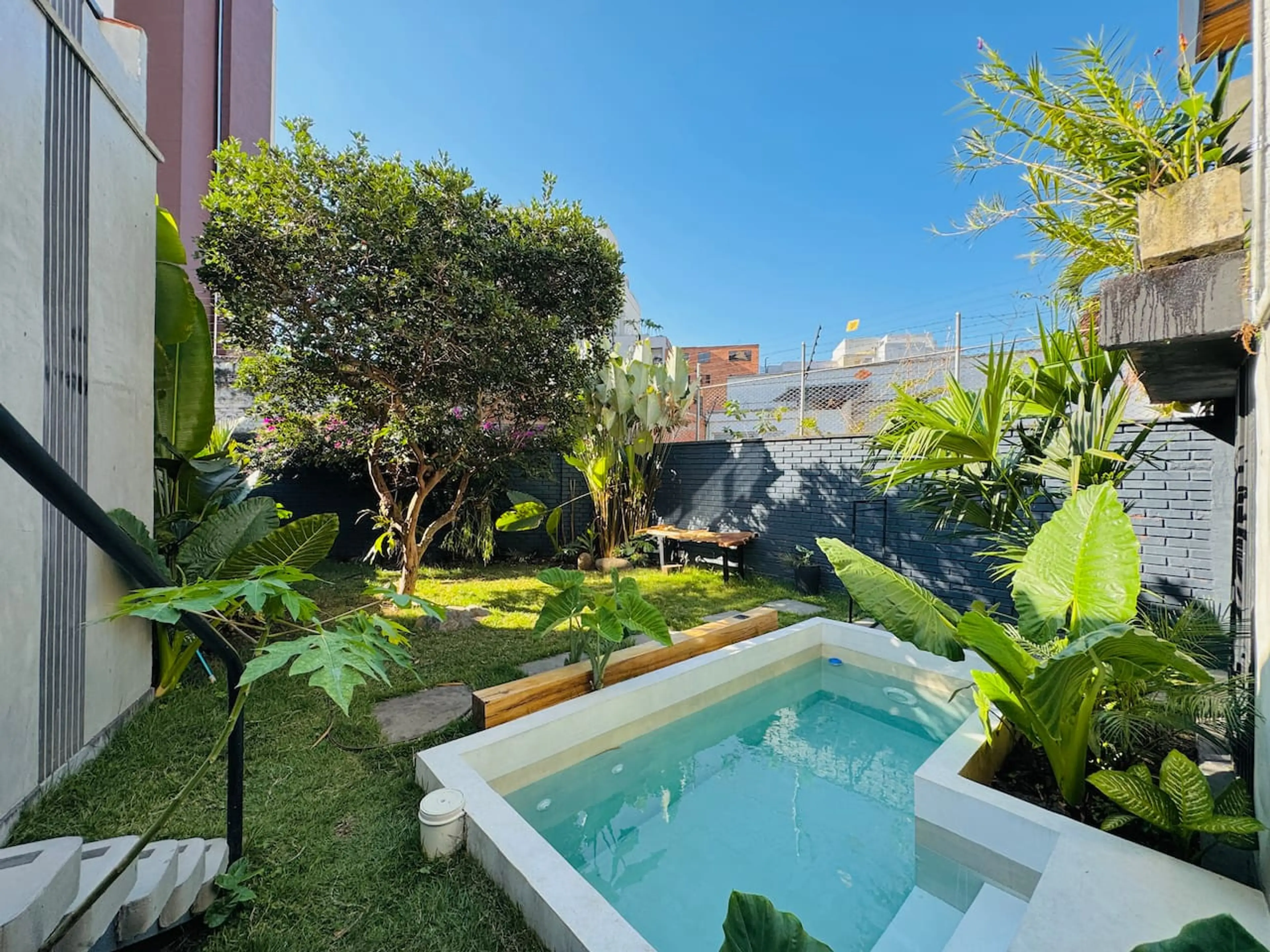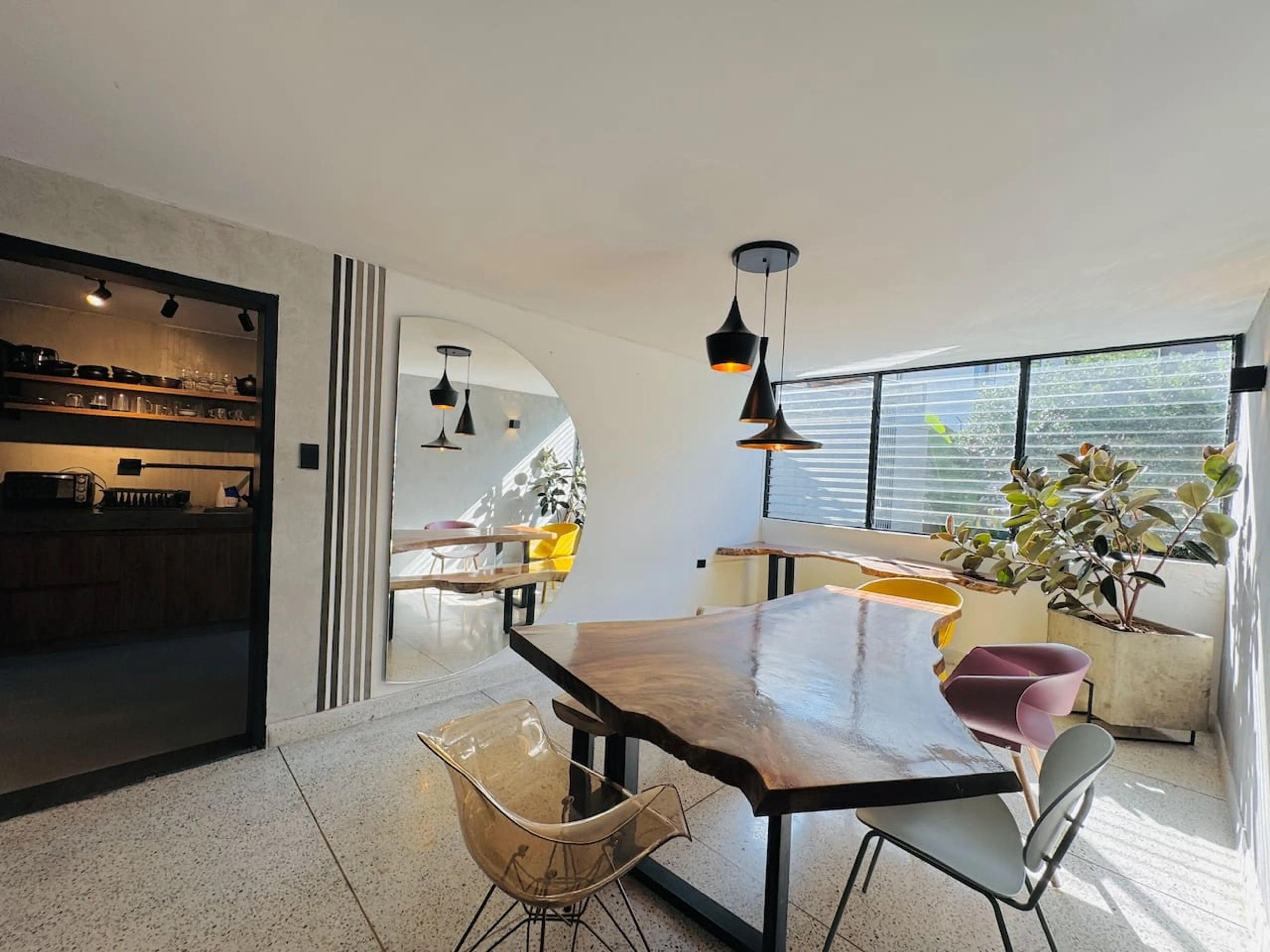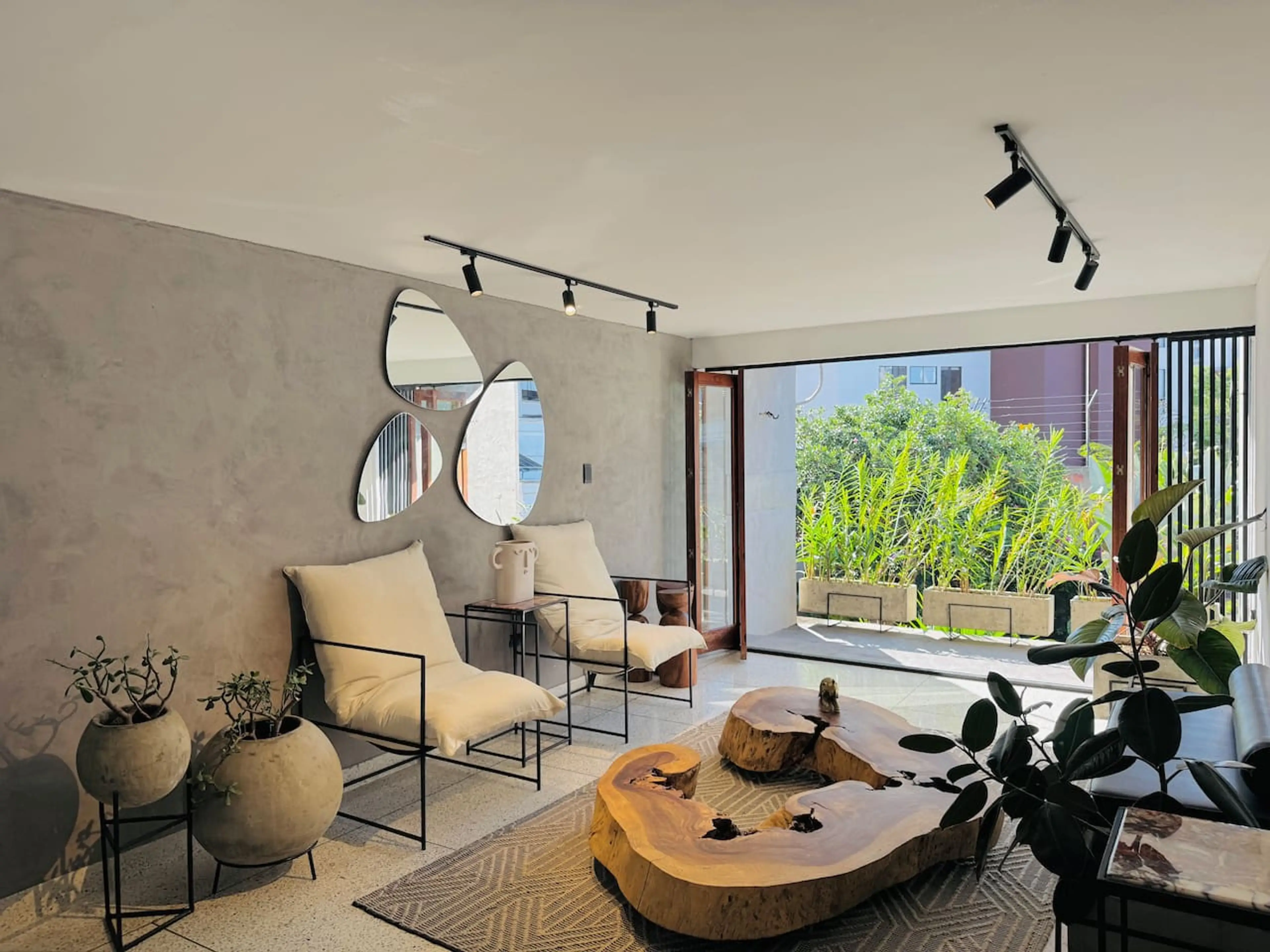 Enjoy a unique stay in this artistic home in Santa Teresita, Cali. Designed by an architect-artist, it blends rustic cement finishes with organic wood furniture and a curated art collection. It features 4 bedrooms — 3 with private bathrooms — a dining area for 8, a kitchen, a work area, and a readin...