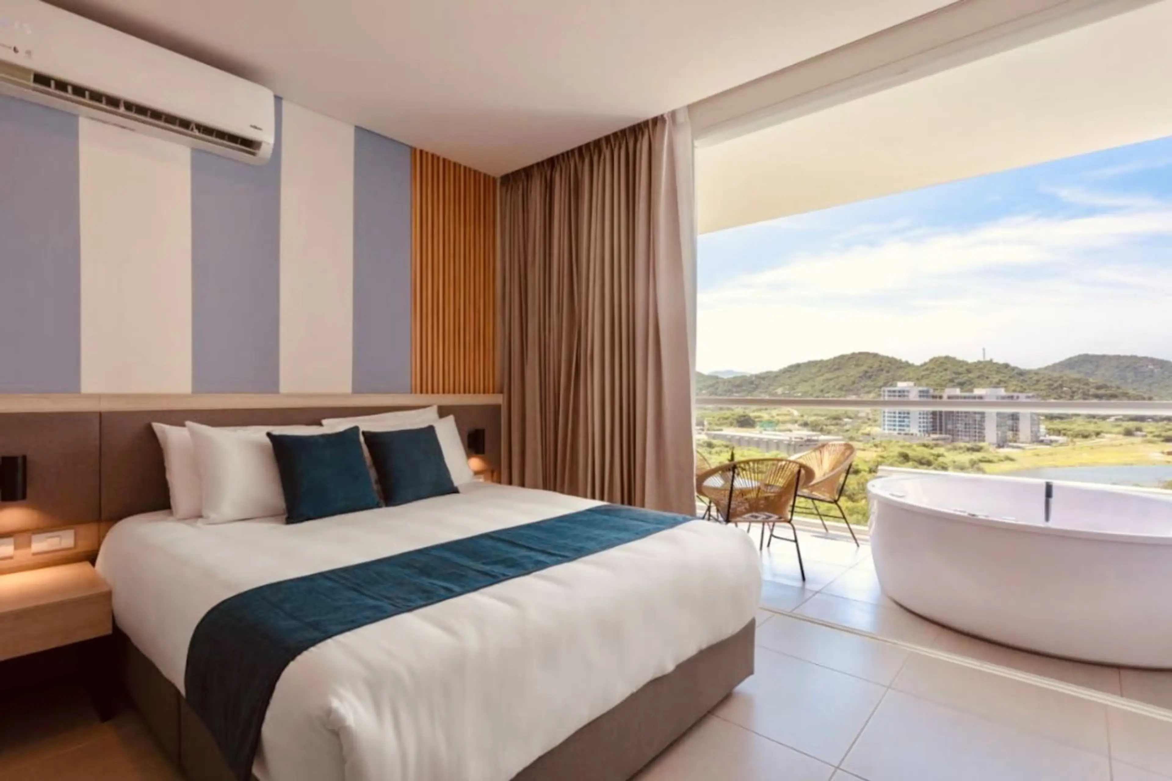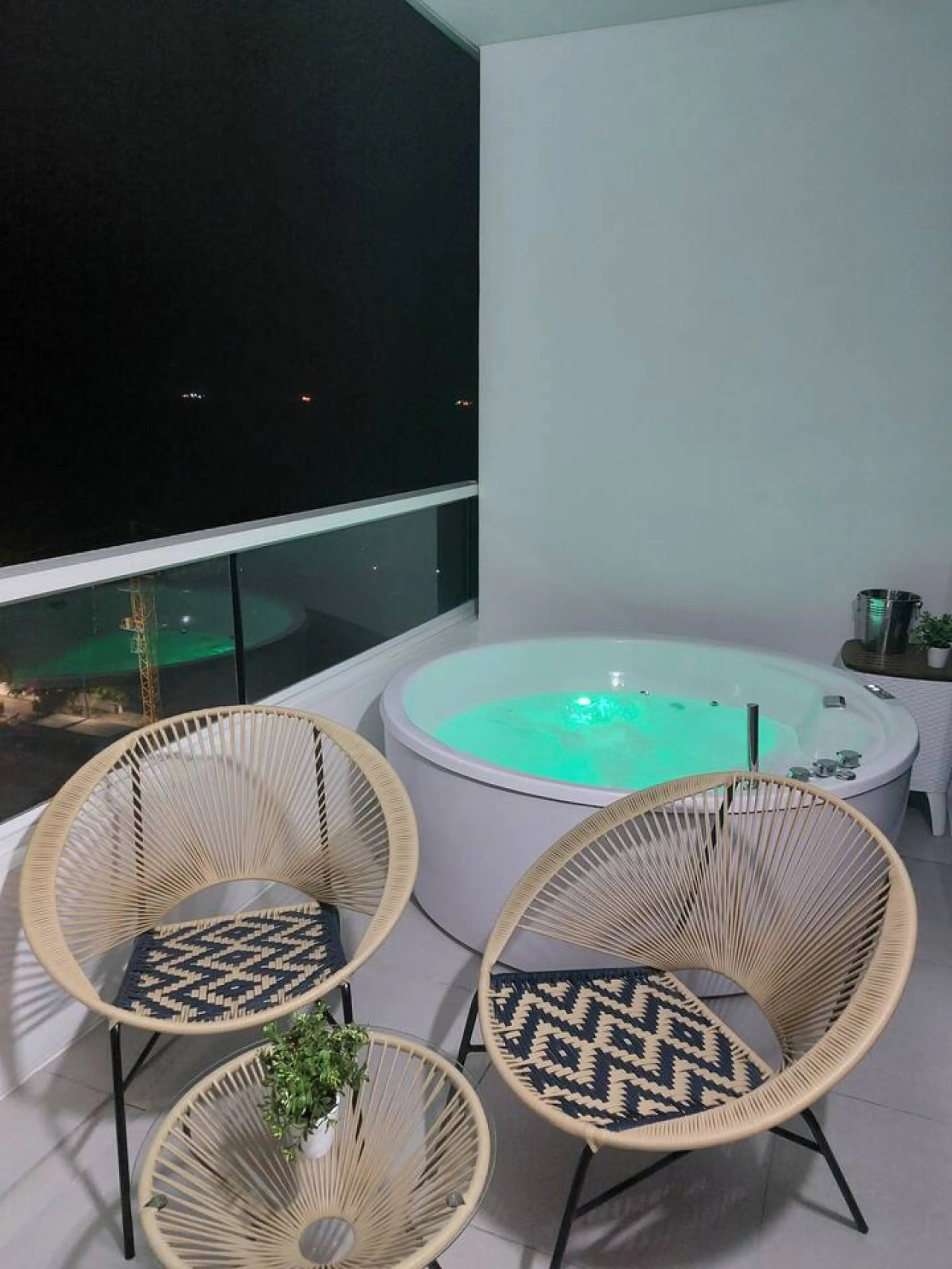 Unwind in this cozy 16th-floor studio in Porto Horizonte, featuring a private jacuzzi on the balcony with stunning ocean and mountain views. Enjoy a queen bed, A/C, a fully equipped kitchen, modern bathroom, and a 55" Smart TV. Just 5 minutes from the airport, with supermarkets, restaurants, and bea...