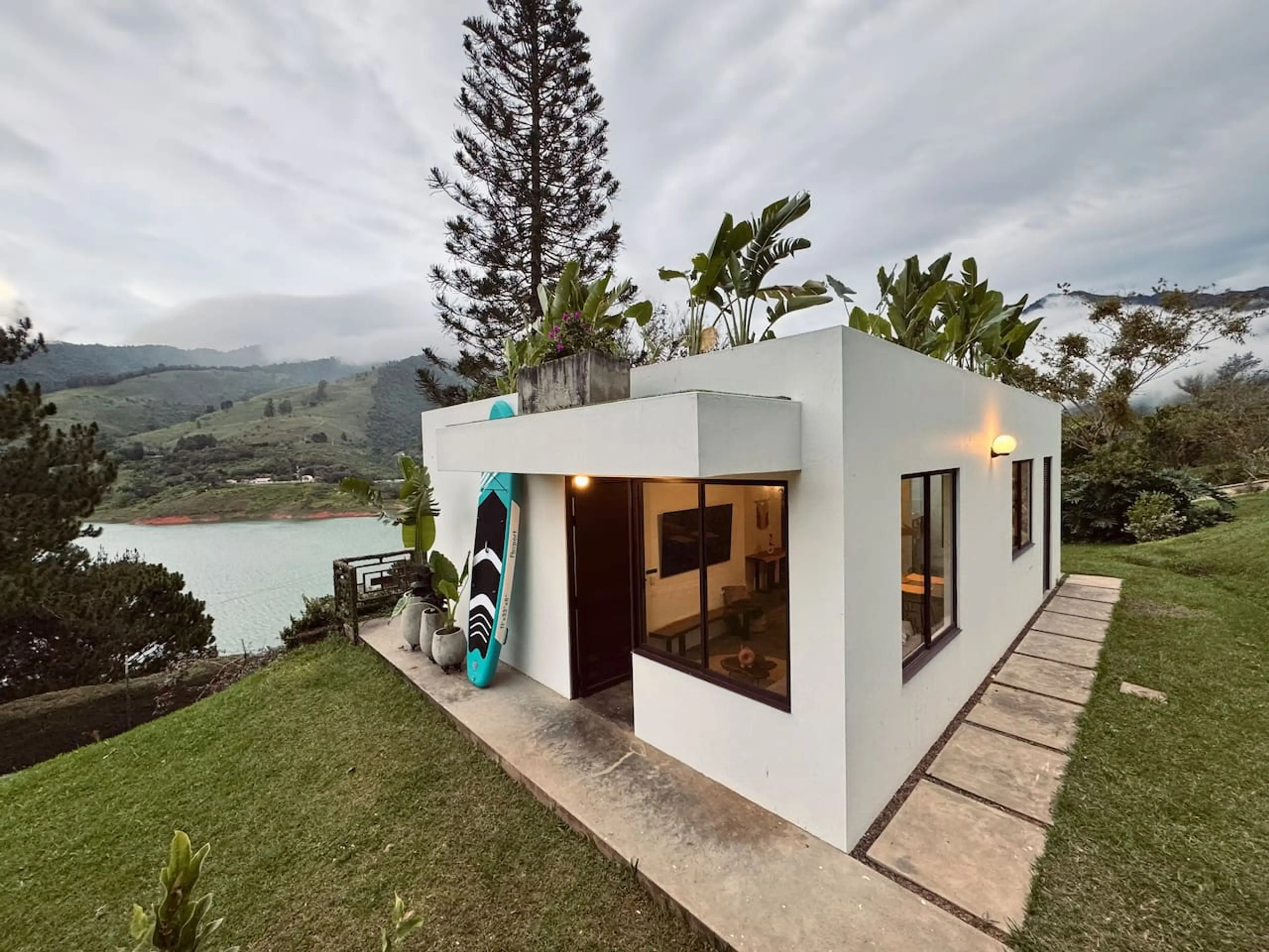 Wake up to stunning lake views in this cozy tropical-style home overlooking Lake Calima. With two queen bedrooms, a fully equipped kitchen, a terrace with BBQ, direct lake access, Starlink internet, and a paddle board included, it’s a perfect blend of comfort, nature, and adventure. Ideal for couple...
